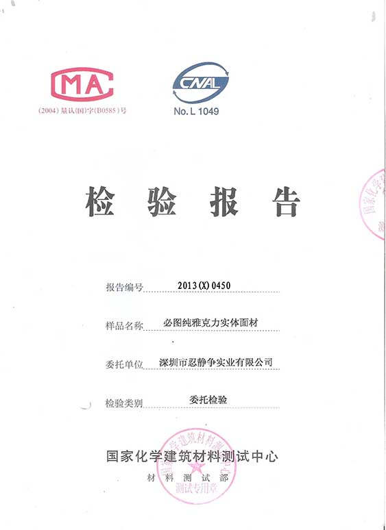 必图纯雅克力检测报告封面